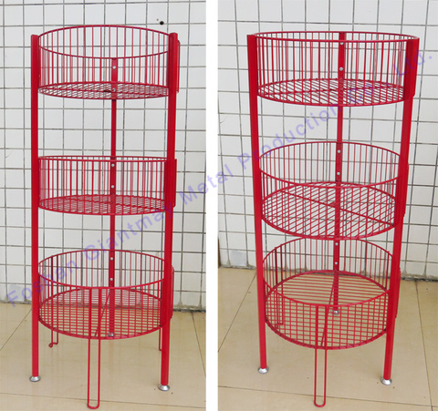 Оптовая продажа, трехслойная красная металлическая корзина для хранения, Проволочная стойка для супермаркета